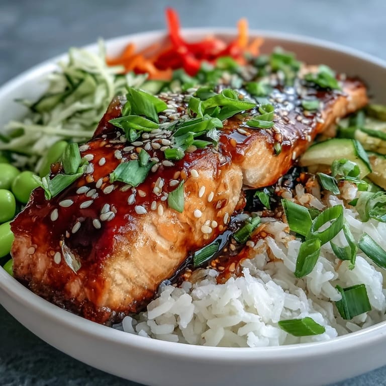Save This Asian-Inspired Salmon Bowl is a vibrant and nutritious meal that brings together perfectly glazed soy-ginger salmon with fluffy jasmine rice and a rainbow of crisp, julienned vegetables. It is the ideal choice for anyone looking for a healthy, pescatarian-friendly dinner that doesn't compromise on bold, fusion flavors.