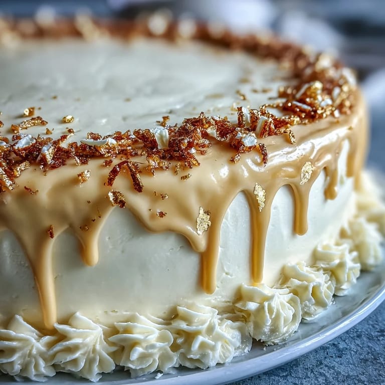 Für extra Geschmack kann dem Kuchenteig Zitronen- oder Mandelaroma hinzugefügt werden. Achten Sie darauf, den Kuchen vollständig abkühlen zu lassen, bevor Sie die Buttercreme und den Drip auftragen – so bleibt die Oberfläche schön glatt und der Drip gelingt optimal. Der goldene Effekt lässt sich am besten mit pulverförmigem Luster Dust erzielen, der mit Wodka oder klarem Extrakt zu einer streichfähigen Farbe angerührt wird.