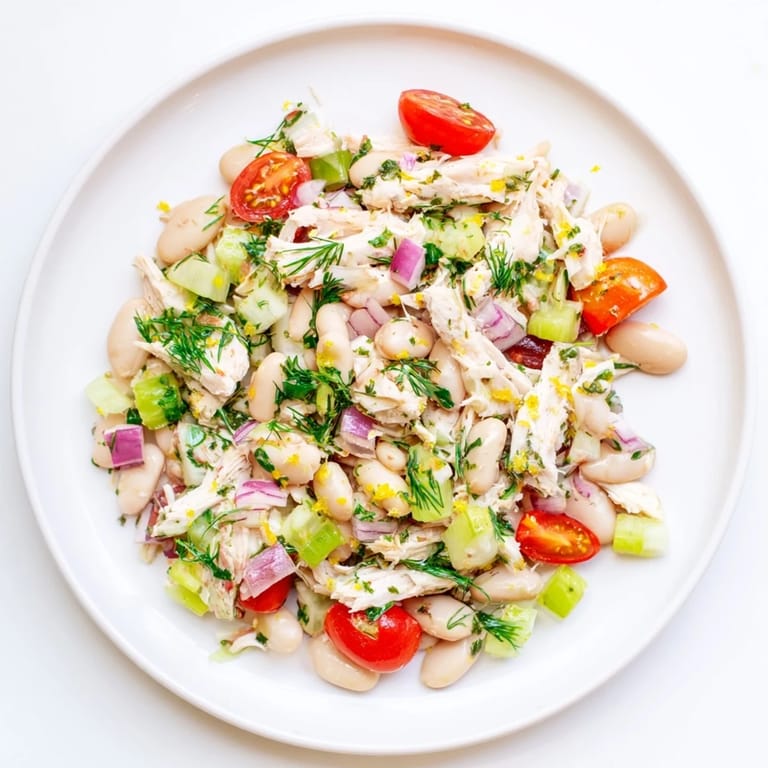 Save The first time I made this salad was during a heatwave when turning on the oven felt like a personal betrayal. I had leftover rotisserie chicken from the night before and a can of white beans that had been sitting in my pantry for months. What happened next was one of those happy kitchen accidents that changes how you cook forever.