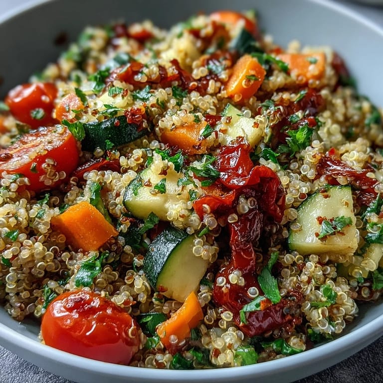 Save There was a Tuesday afternoon when my kitchen felt too quiet, and I needed something that would fill it with color and purpose. I'd just come back from the farmer's market with an armful of vegetables that seemed to be having their own little conversation in my canvas bag, and I realized I had no real plan beyond roasting them. That's when quinoa came to mind, and somehow everything clicked into place—the gentle nutty grain soaking up all those roasted flavors, the herbs arriving at the last moment like guests who knew exactly when to show up.
