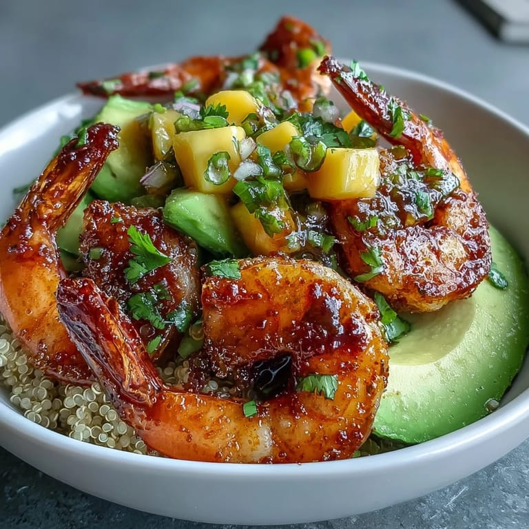 This recipe is a dream for meal prep because you can cook everything in advance and store the components separately. Keep the cooked quinoa, grilled shrimp, mango salsa, and lime chili sauce in separate containers in the fridge for up to three days. Slice the avocado fresh when you're ready to assemble, or store it with a squeeze of lime juice and plastic wrap pressed directly on the surface. When it's time to eat, just warm the shrimp and quinoa gently or enjoy them cold, then build your bowl and drizzle away.