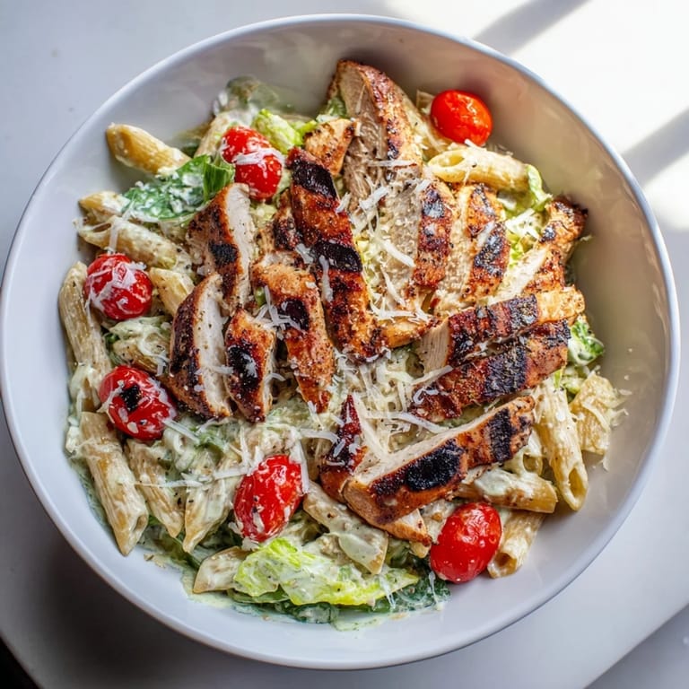 Save The smell of cayenne hitting hot olive oil always takes me straight back to my kitchen on a Tuesday night when I had leftover Caesar dressing and zero dinner plans. I tossed some spice on chicken breasts, grilled them harder than intended, and mixed everything with pasta because I was too hungry to be precious about it. That happy accident turned into this recipe, which now shows up on my table at least twice a month. It's the kind of meal that tastes like effort but really isn't, and somehow everyone asks for seconds. I never expected a weeknight scramble to become my most-requested dish.